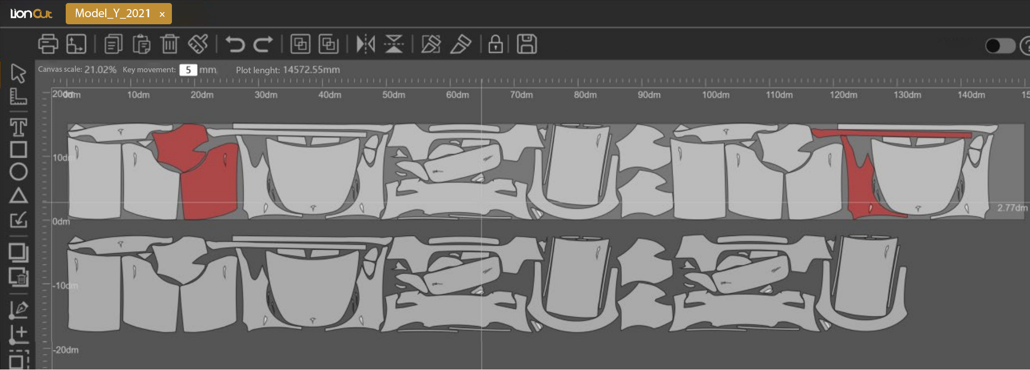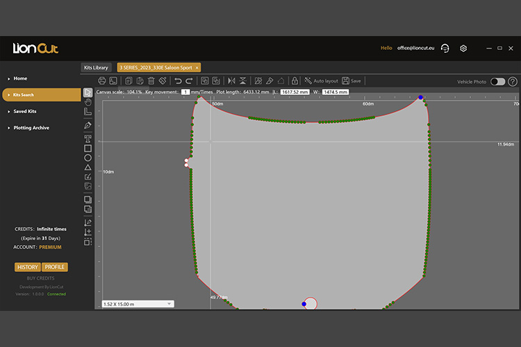 The vector pattern editing feature in LionCut allows for intuitive adjustment and modification of cutting patterns, ensuring precision and a perfect fit for each vehicle.